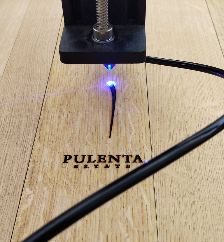 Nos especializamos en grabar barricas y lo hacemos sin quitar la tapa, cuidando cada detalle con precisión, ya sea en nuestro taller o en la bodega. Grabamos la panza de las barricas y duelas individuales.